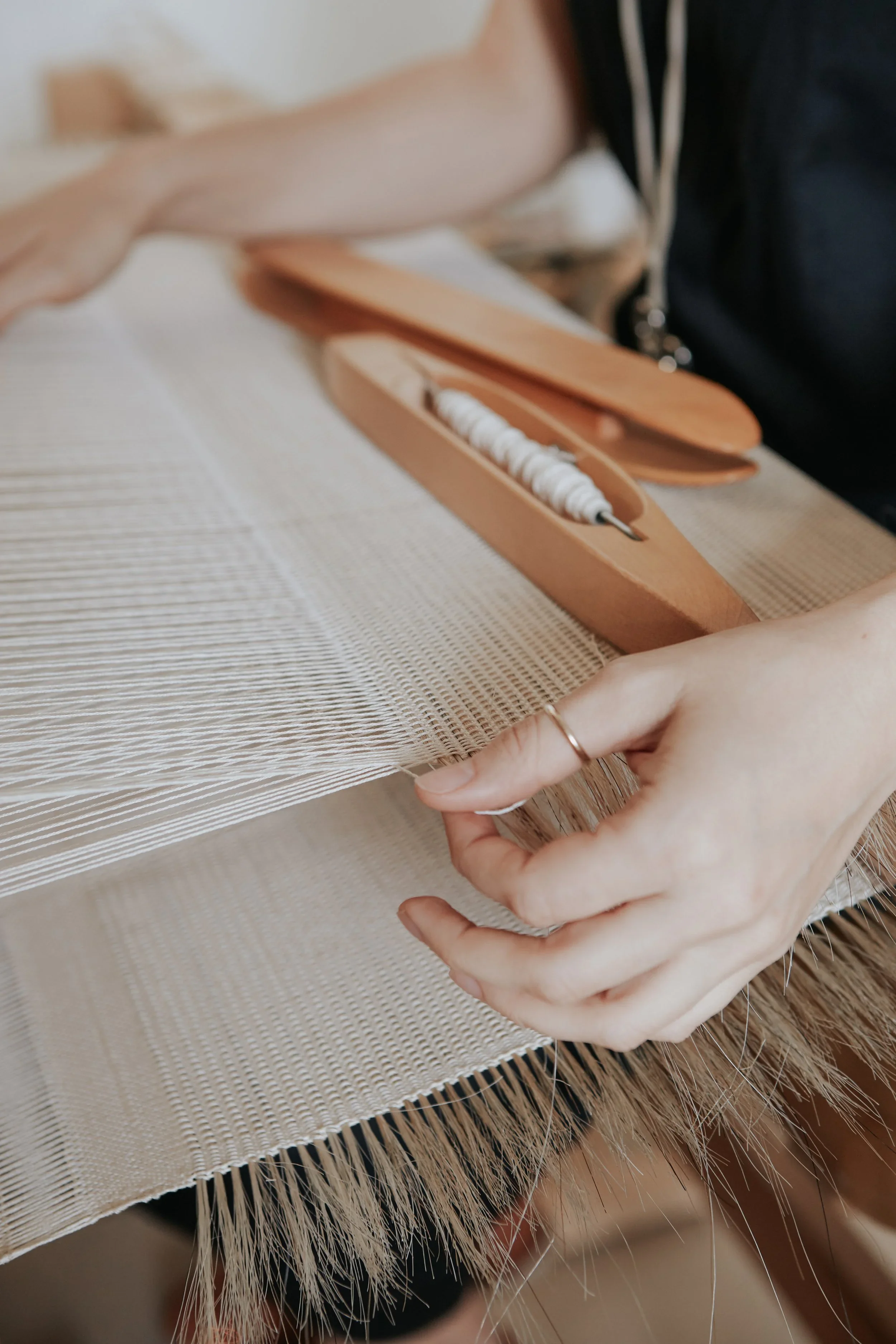 Η προσέγγισή μου βασίζεται στον zero-waste σχεδιασμό και σε αργές, χειροποίητες διαδικασίες. Οι υψηλής ποιότητας, βιώσιμες φυσικές ίνες αποτελούν θεμελιώδες στοιχείο της πρακτικής μου, με στόχο τη δημιουργία υφασμάτων που διακρίνονται για τη διάρκεια, την απλότητα και την ουσιαστική τους παρουσία στον χώρο.