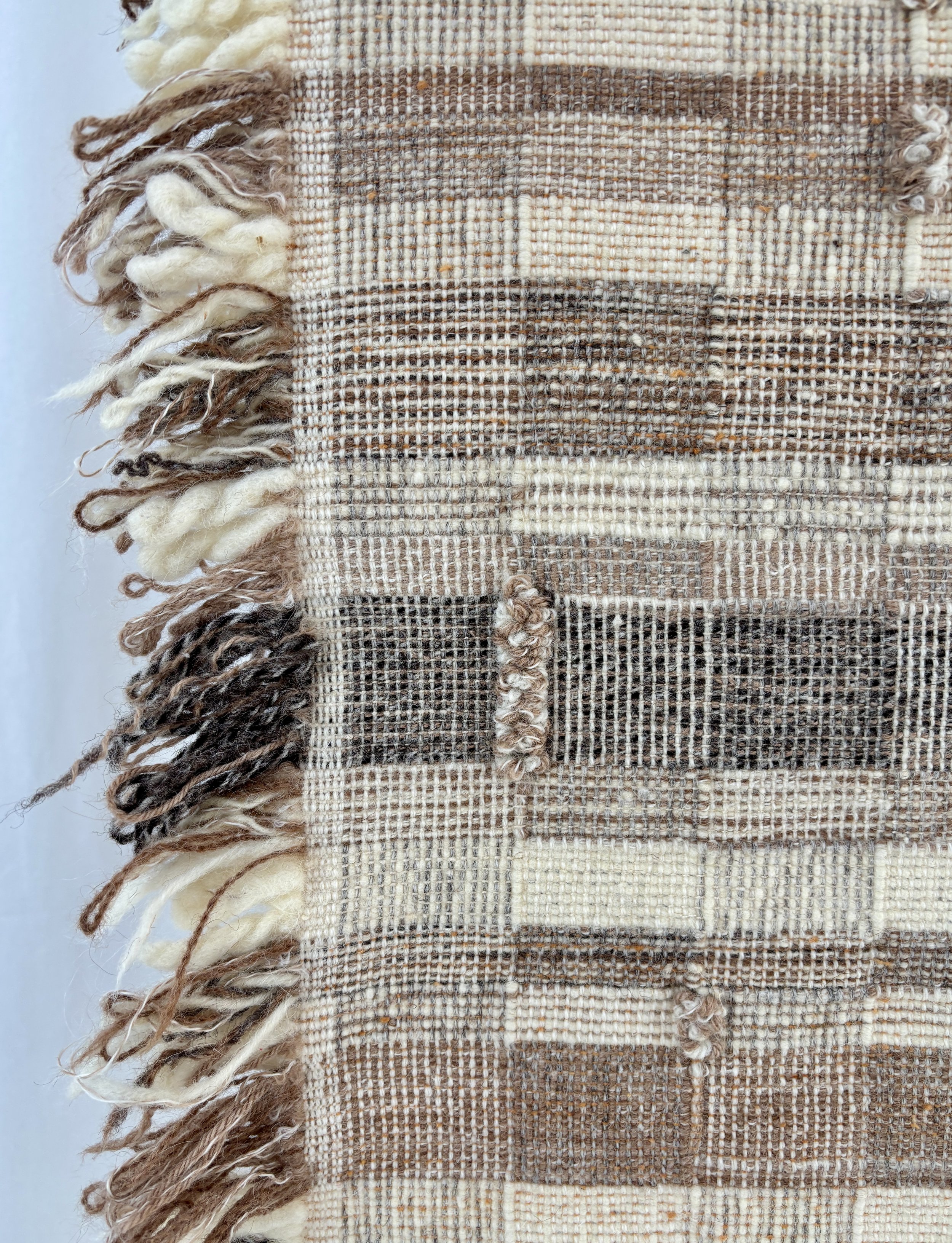 Materials: natural undyed British wool, natural undyed British alpaca, natural undyed British alpaca, natural undyed Eri Peace silk, natural undyed Greek wool.
